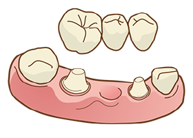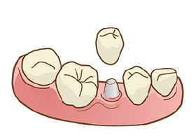 麻酔をかけてから歯ぐきを切開し、顎の骨に穴を開けてインプラントを埋め込みます。インプラントの先にはアバットメントと呼ばれる土台も取りつけます。